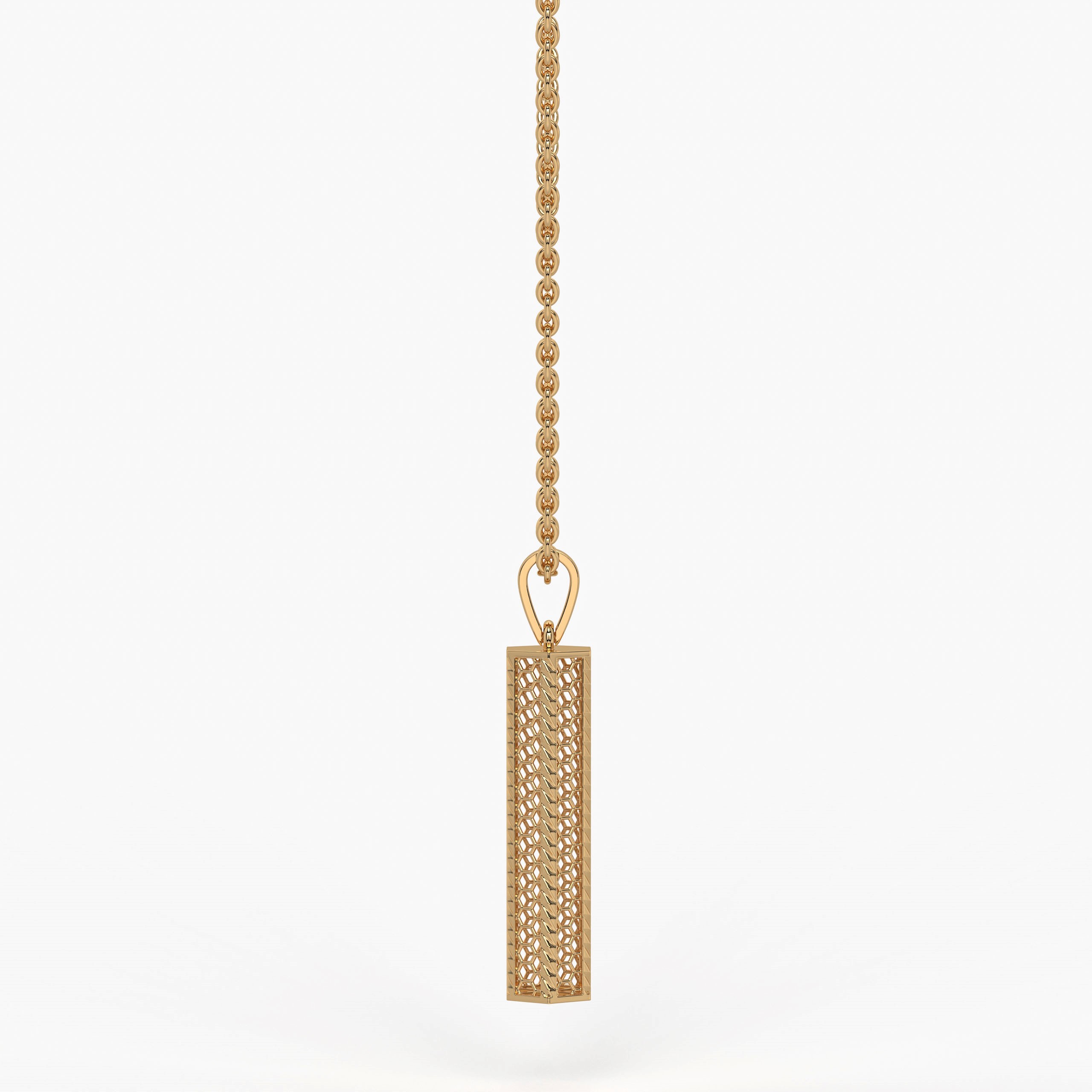 The Honeycomb Pendant is a striking blend of modern design and refined craftsmanship. Featuring an intricate hexagonal lattice pattern inspired by geometric symmetry, this cylindrical pendant showcases detailed openwork that enhances light reflection and creates a radiant, luxurious finish. Its geometric design adds a contemporary edge to traditional jewellery, making it a versatile piece for office wear, festive celebrations, or evening events.